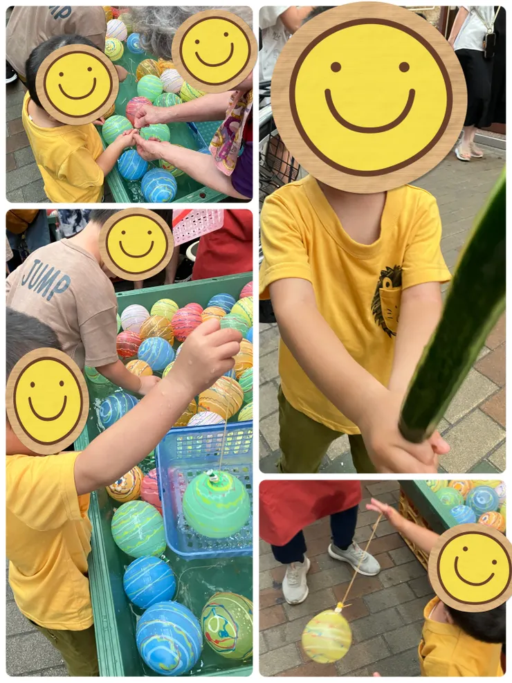 次男はお祭りに行き、ヨーヨー釣りのお店のおばちゃんに特訓して貰いました。取ったヨーヨーでの遊び方も教えて貰ってました💓