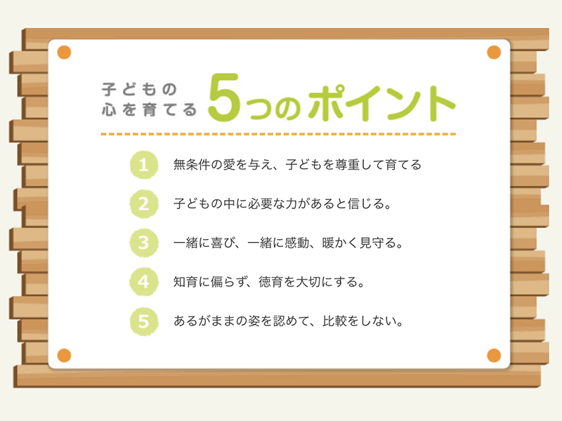 1つ目は「無条件の愛を与え、子どもを尊重して育てる」ことです。