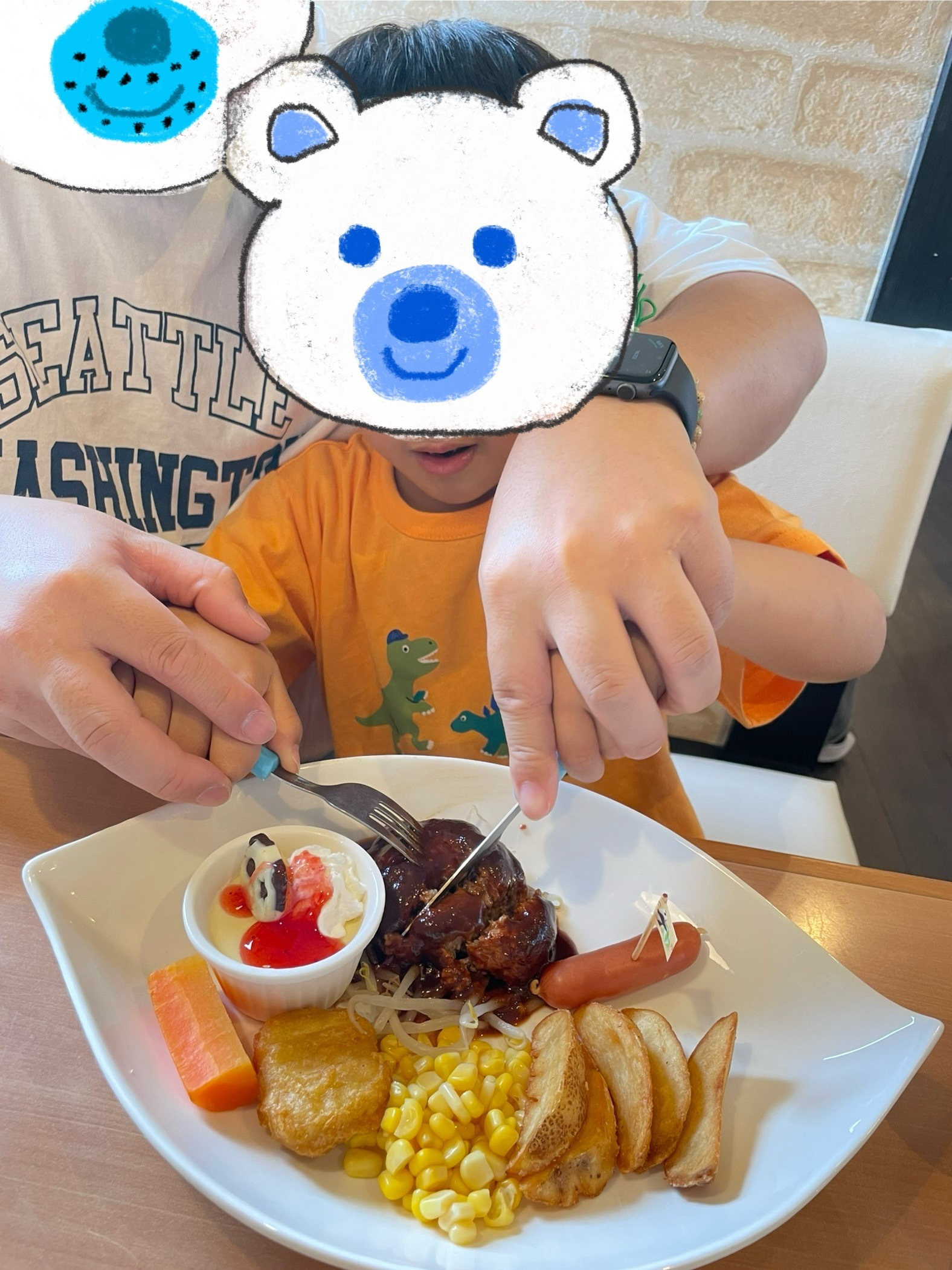 ナイフはなかなか難しいのに、自分で切って完食!すごい👏