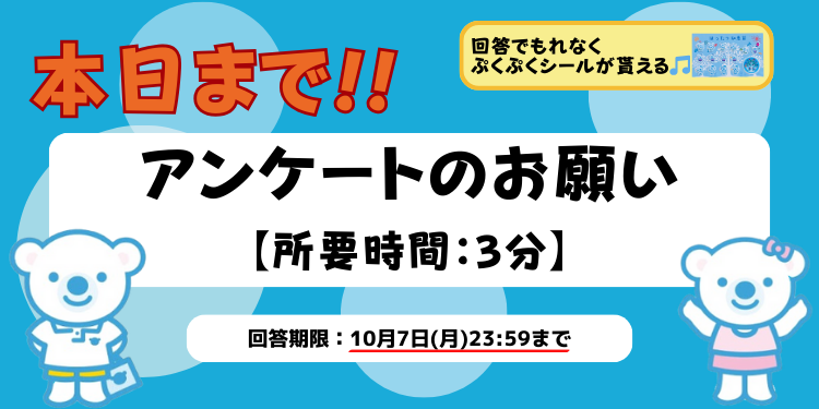 アンケートの回答期限は、本日10月7日(月)23:59までとなっており、
