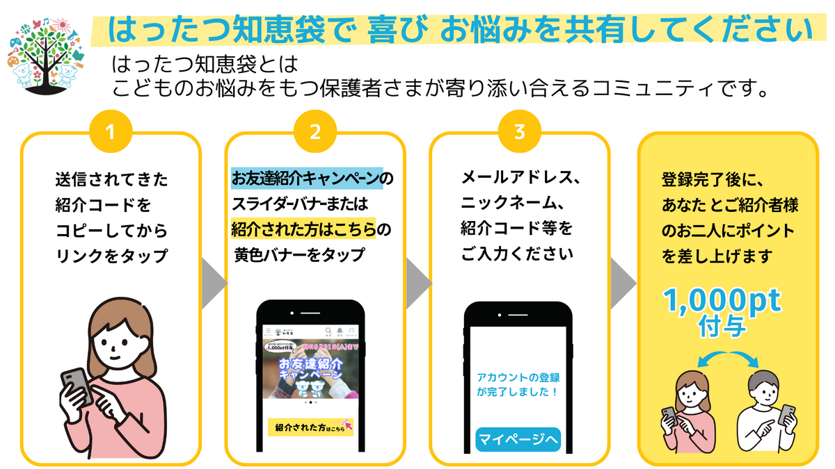 ※ 登録完了後に、あなた とご紹介者様のお二人に1000ポイントが自動付与されます。