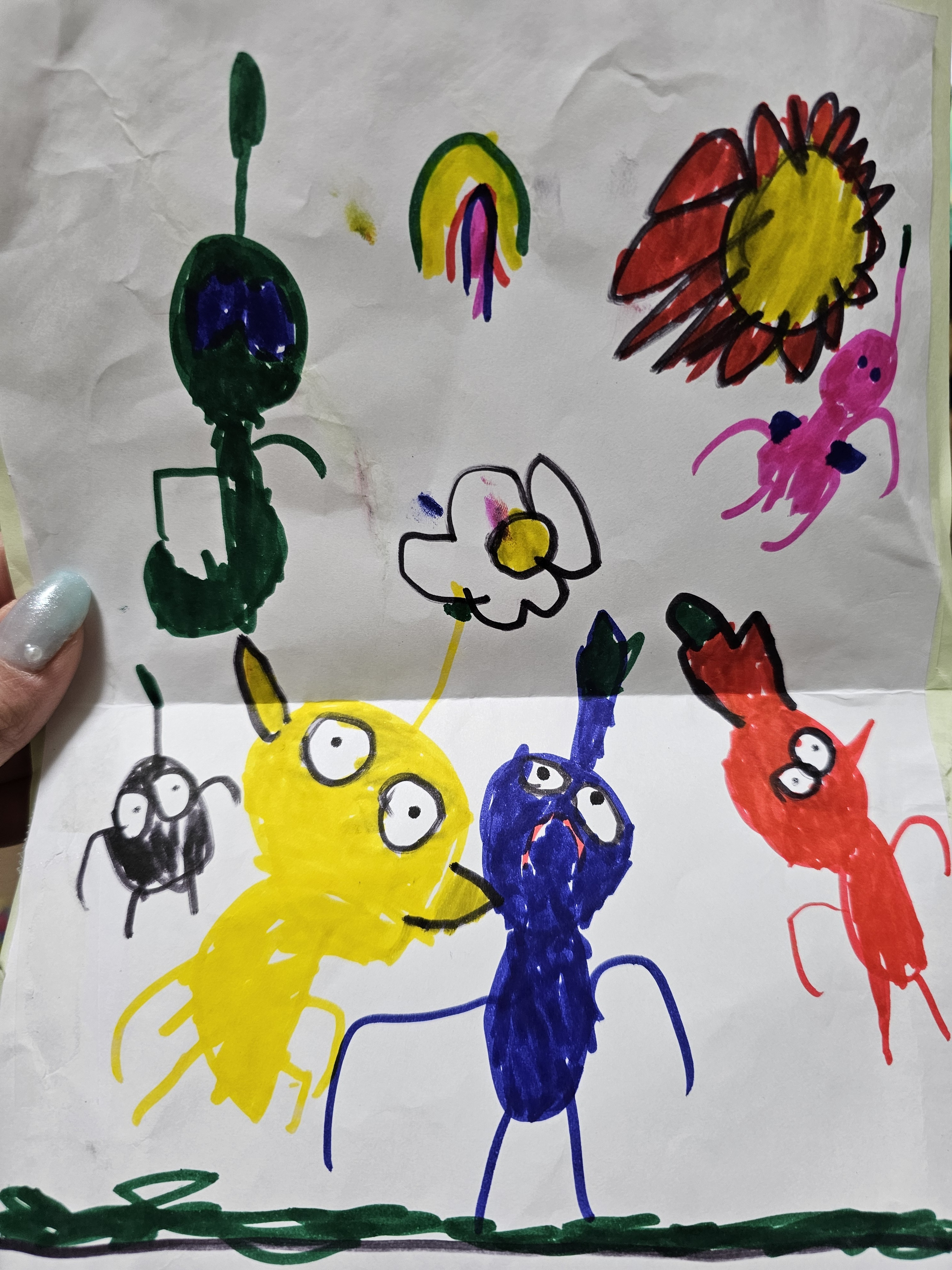 トップ > お写真・動画募集コーナー > 楽しい工作 > 妹への贈り物(絵) しゅっちゃん 2024/03/07 14:59 妹への贈り物(絵) 幼稚園から帰ってくると 下の子👧のバッグに1つのお手紙らしきものを発見! 見てみると、 ◯◯(妹の名前) 下にはフルネームで息子の名前が 先生の字で書かれていました! 開けてみると! ピクミンの絵が描いてありました♥️ 大好きなピクミンの仲間と 太陽と虹も描いてありました✨ 妹に絵手紙するのは 初めてでいつも描くだけだったのに プレゼントするなんて素敵すぎました😊 ママにもプレゼントしてくれるのかなぁ?なんて期待して待ってます笑 可愛いすぎる絵なので スマホの待ち受けにしました😌🌸 絵 ピクミン 太陽 虹 絵手紙 プレゼント 年中 いいね 共有する 共有する X facebook LINE リンクをコピー コメントする 3 件の返信 (新着順) ミュートしたユーザーの投稿です。 投稿を表示 happy 2024/03/08 09:15 しゅっちゃん 前回のばいきんまんの絵をしゅっちゃんさんや蓮田教室の先生方に褒めれらて、自信がつき→妹さんにプレゼントですかね! 本当に温かい気持ちになります💗 ママへのお手紙、期待しちゃいますね(笑) 受け取った時には是非共有してください(^^)/ いいね 返信する ミュートしたユーザーの投稿です。 投稿を表示 しゅっちゃん 2024/03/08 09:58 happy そうかもしれません😊 たくさん褒めてもらうと自信がつきますよね♥️ 是非、共有させてください✨ いいね 返信する ミュートしたユーザーの投稿です。 投稿を表示 りっきー 2024/03/07 22:08 妹さんに絵手紙だなんて素敵ですね💓 かわいい待ち受け画面、うらやましいです。 いつママにもプレゼントくれるかなぁって期待しちゃう気持ち分かります😃 プレゼントされた時にはまた教えて下さいね✨ いいね 返信する ミュートしたユーザーの投稿です。 投稿を表示 しゅっちゃん 2024/03/08 06:54 りっきー ありがとうございます😊 プレゼントしてもらえたら載せますね♥️ いいね 返信する ミュートしたユーザーの投稿です。 投稿を表示 Natsu 2024/03/07 18:48 まってください!ピクミンも上手なんですね!!!! 「光ピクミンじゃないですか?!!」「岩ピクミンと羽ピクミンもいる~ッ😂!」 と蓮田の指導員にも見せたら大盛り上がりでした✨ 本当にこれからも沢山お絵描きをしてほしいです♪ いいね 返信する ミュートしたユーザーの投稿です。 投稿を表示 しゅっちゃん 2024/03/07 19:01 Natsu 蓮田教室のみなさん見てくださったんですね♥️ 嬉しいです😊ピクミンも上手なんです! 1月は毎日のようにピクミン描いてて、久しぶりのピクミン登場だったのですが、前よりも上手になってました🤣 好きなものは、吸収が早いです✨ いいね 返信する