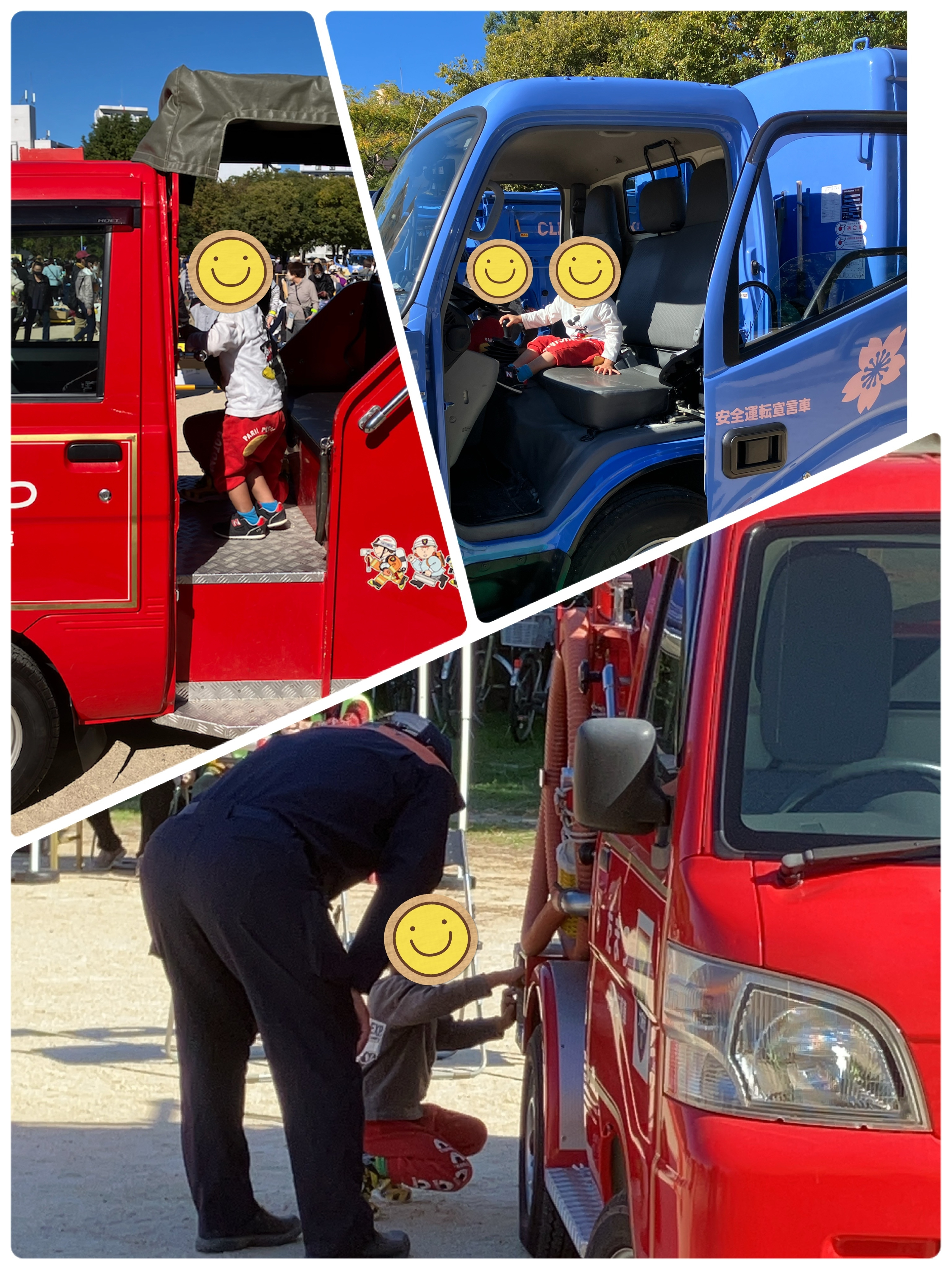 前回、消防車やパトカーに乗りたかったのに父と二人で並んでいて自分の順番が来た直前に「やっぱり乗らない!」とドキドキして乗ることを断念してしまった兄。