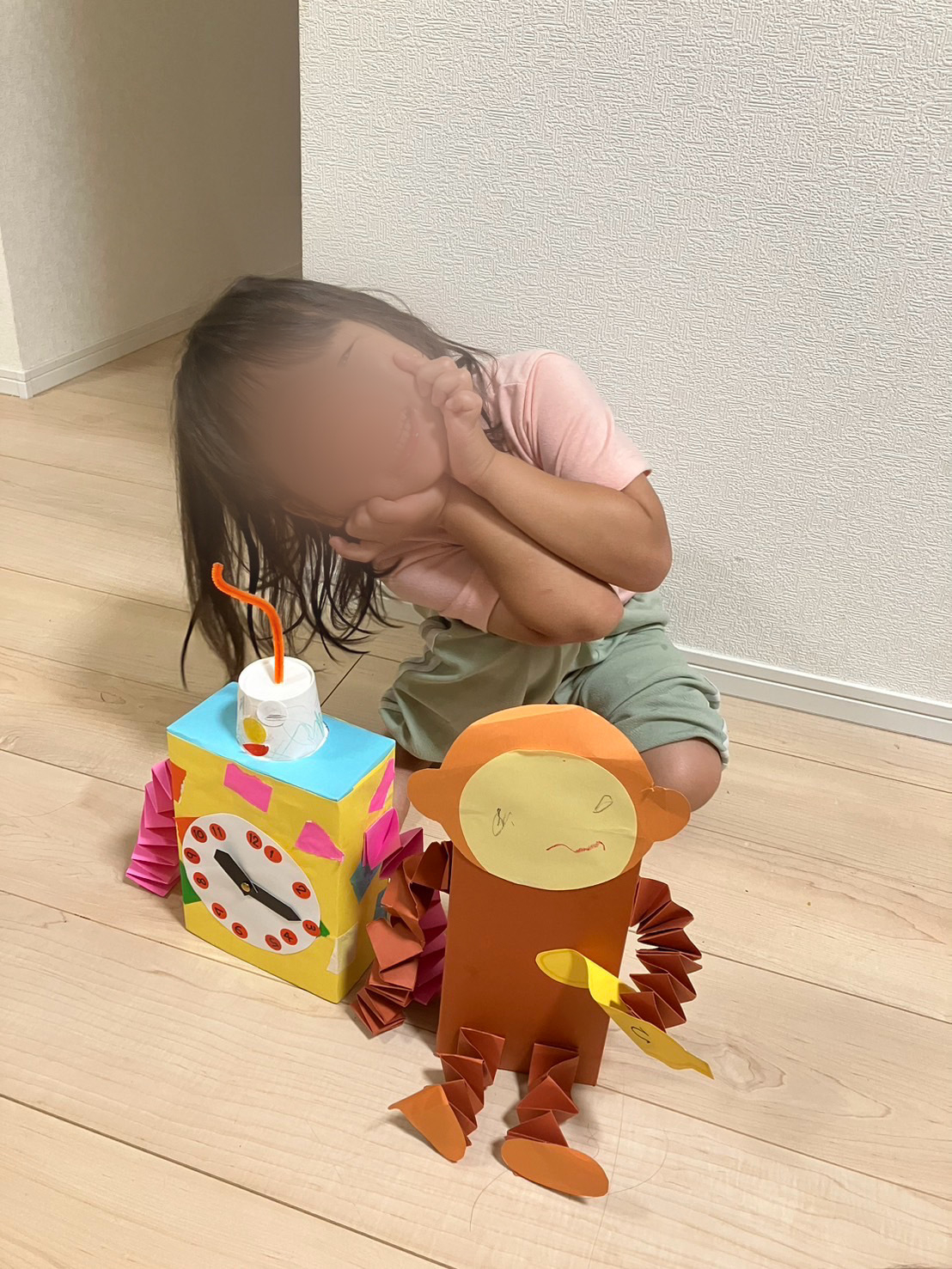 トップ > お写真・動画募集コーナー > 楽しい工作 > おさるさんと時計ロボット はーひー 2024/07/27 22:26 おさるさんと時計ロボット 保育園の工作です。 あまりにかわいらしくて、大切に飾っています。保育園の先生、すごいな〜。 ちなみにお猿は、お尻には赤の折り紙で貼り絵がされています。 保育園の工作 娘の作品 4歳3か月 いいね 共有する 共有する X facebook LINE リンクをコピー コメントする 4 件の返信 (新着順) ミュートしたユーザーの投稿です。 投稿を表示 さんちゃんママ@運営 2024/07/29 17:50 はーひー はーひーさん、投稿ありがとうございます🎶 お猿さんも時計ロボットもすごく上手ですね! ニコニコのポージングもかわいい😍 いいね 返信する ミュートしたユーザーの投稿です。 投稿を表示 わらさん 2024/07/29 17:25 はーひー なかなかのサイズ感ですね! 表情が見えないのに嬉しそうなのが伝わってきます😁 いいね 返信する ミュートしたユーザーの投稿です。 投稿を表示 きゅうちゃん 2024/07/29 10:49 はーひー 保育園の製作🎵2点とも素敵ですね!! むすめさんの喜んでいる様子が伺えます!!❤️ いいね 返信する ミュートしたユーザーの投稿です。 投稿を表示 k 2024/07/28 11:57 はーひー 保育園の工作、取っておいちゃいますよね。気持ちわかります。 いいね 返信する