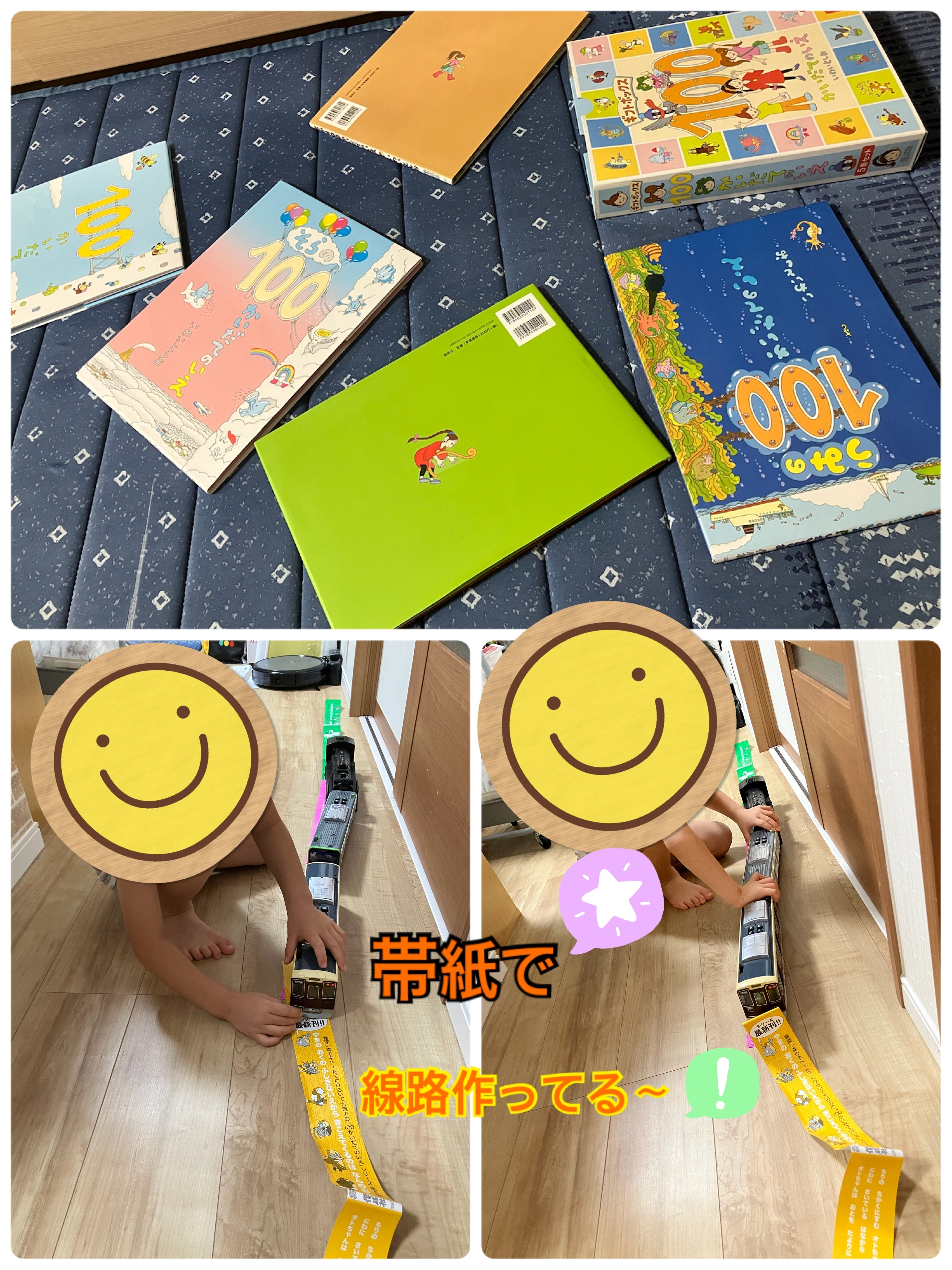 本の帯を線路に!!子どもの発想力って無限ですよね😀