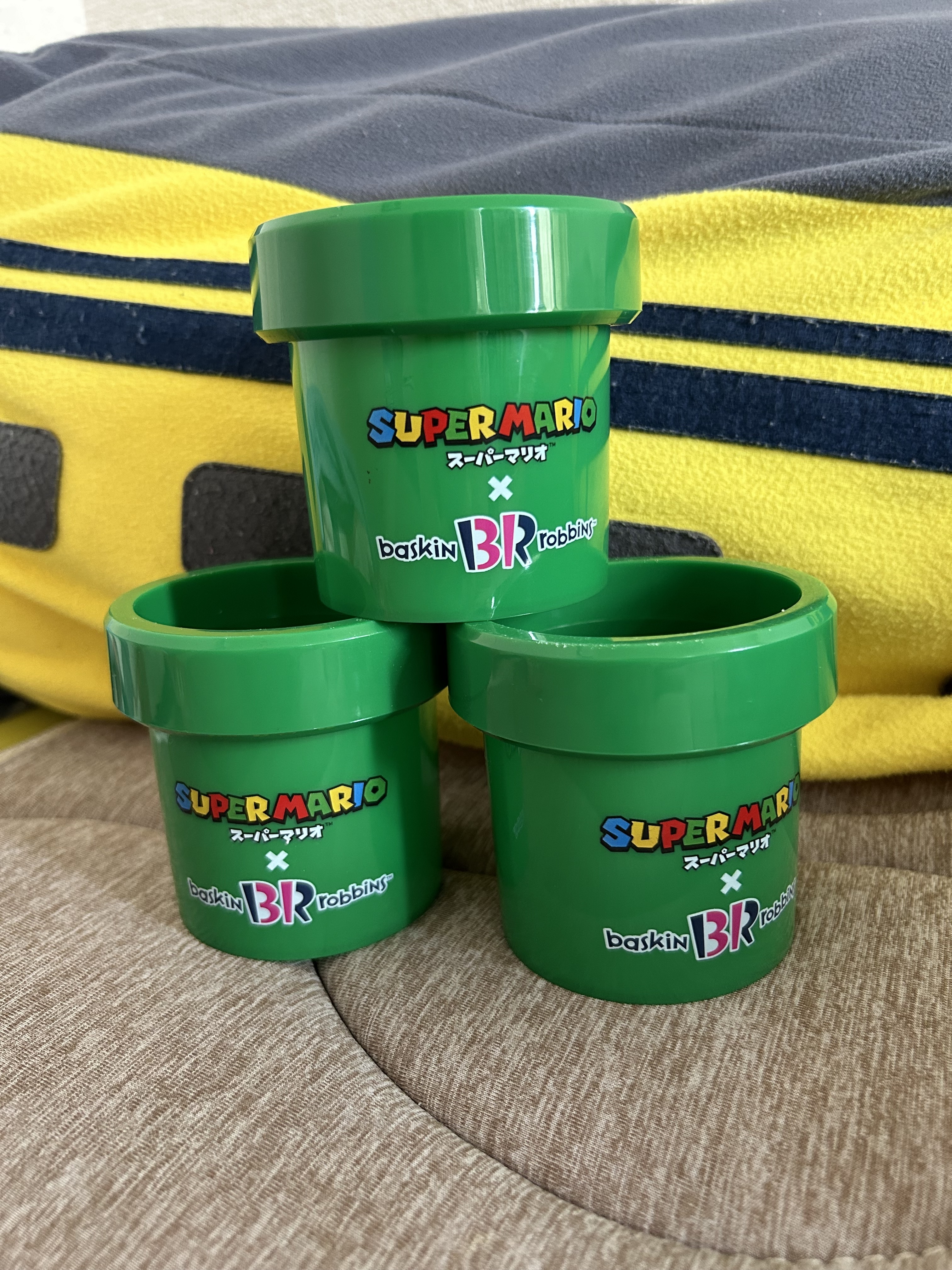 親の私がマリオの土管カップが欲しくてみんなこの土管にしたのですが、食べ終わって帰ろうとした時に娘が一つ持っているだけであと2個どこにもなく💦