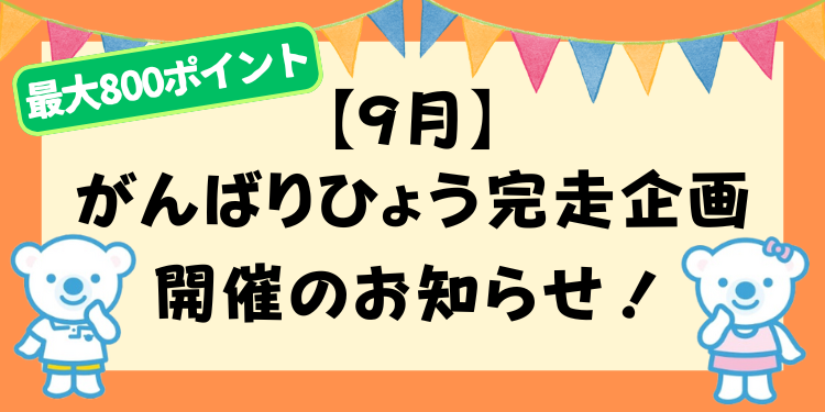 全て埋めていただいた方々へポイントを付与する「がんばりひょう完走企画」を9月も開催します!