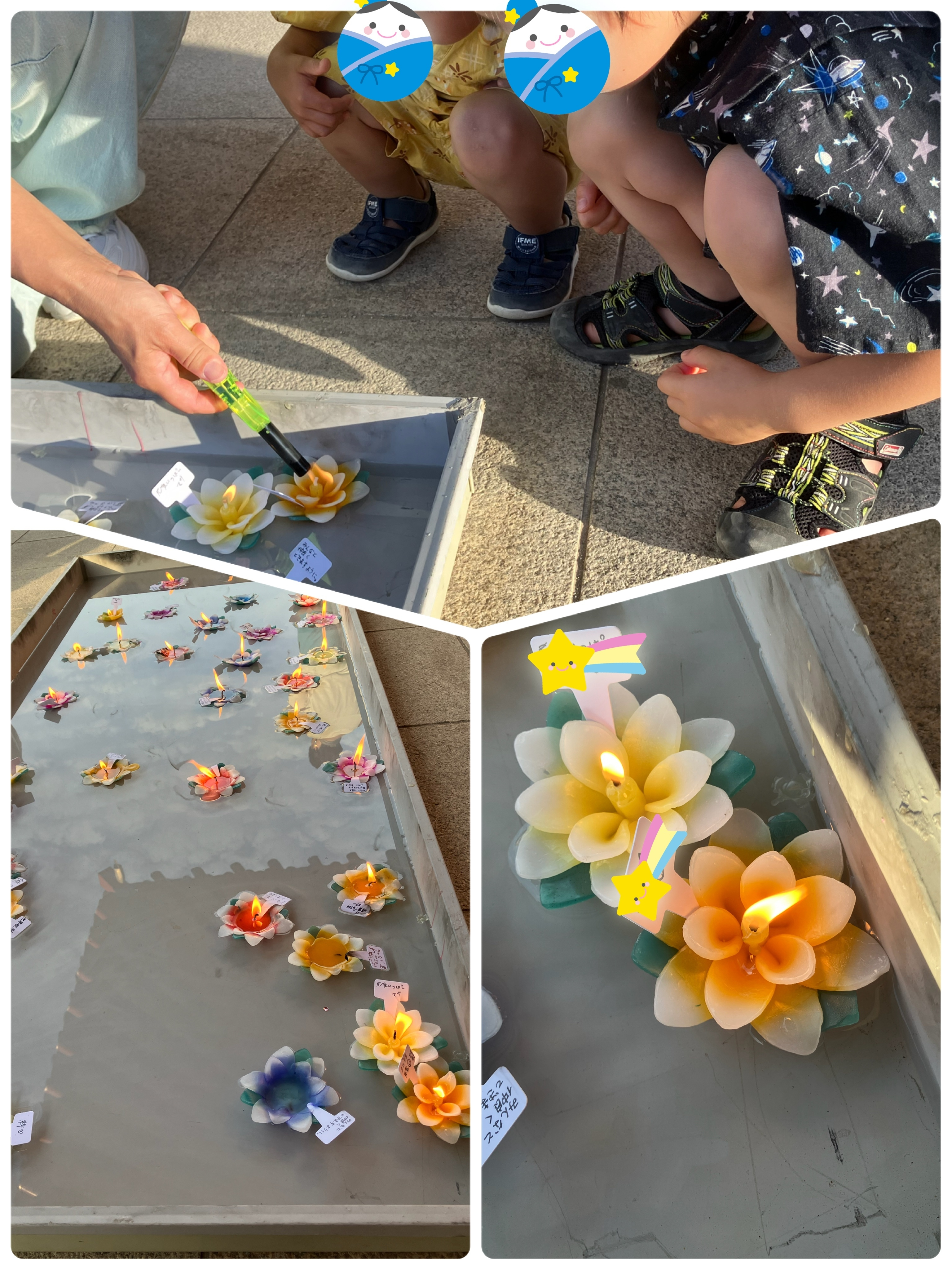 「コレはどうして火をつけるの?どうして溶けてるの?この中にお水が入ってるのはなんで?溶けたらどうして色が混ざるの?織姫さんはどこにいるの?お願い事は誰が叶えるの?燃えたらどうして煙は黒くなるの?いつになったらこの火は消えるの?…」いろいろなことに疑問、好奇心がありおそらく20分ほどこの場にいました。