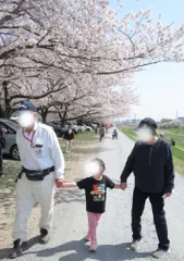 おじいちゃんとおばあちゃんと手を繋いで 大好きなおじいちゃんとおばあちゃんとお散歩。桜がとても綺麗でした。