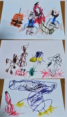 1年間の作品★ 昨日、修了式でした!年中さんが終わり、春休みスタートです✨ 1年間の作品を持って帰ってきて行事の絵が描かれているのですが始めの頃は何を描いているのかもわからない笑2学期くらいから、これを描いているのかな?と少しわかるようになって、最後の方のはもうハッキリわかります😍 自分でも、こ