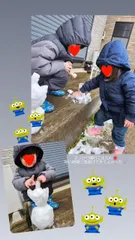 ちょこっとだけ雪遊びしたよ♥️ 雪で幼稚園が自由登園のためお休みして自宅で過ごすことにしました! 息子が「おうちがいい~」と言っていたので😊 今はすっかり晴れてきましたが午前中の早い時間にお庭で小さな雪だるまを作ったり雪を触ったりしました❄️ 雪だるまは、リトルグリーメンにしました♥️ ほぼ