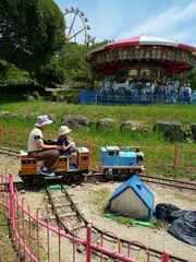 遊園地、動物園、どっち? 遊園地に乗ったものがいくつかあって、写真は、トーマスに乗ったときの私と息子なんですけど、夫は入らないと思ったらしく、息子と一緒に乗るのは、私と自然に決まりました。動物園での息子の行動はキリンのえさやりくらいでした。タイトルの解説ですが、ここは、動物園の入園料で、遊園地も入園できますが、動物園のえさや